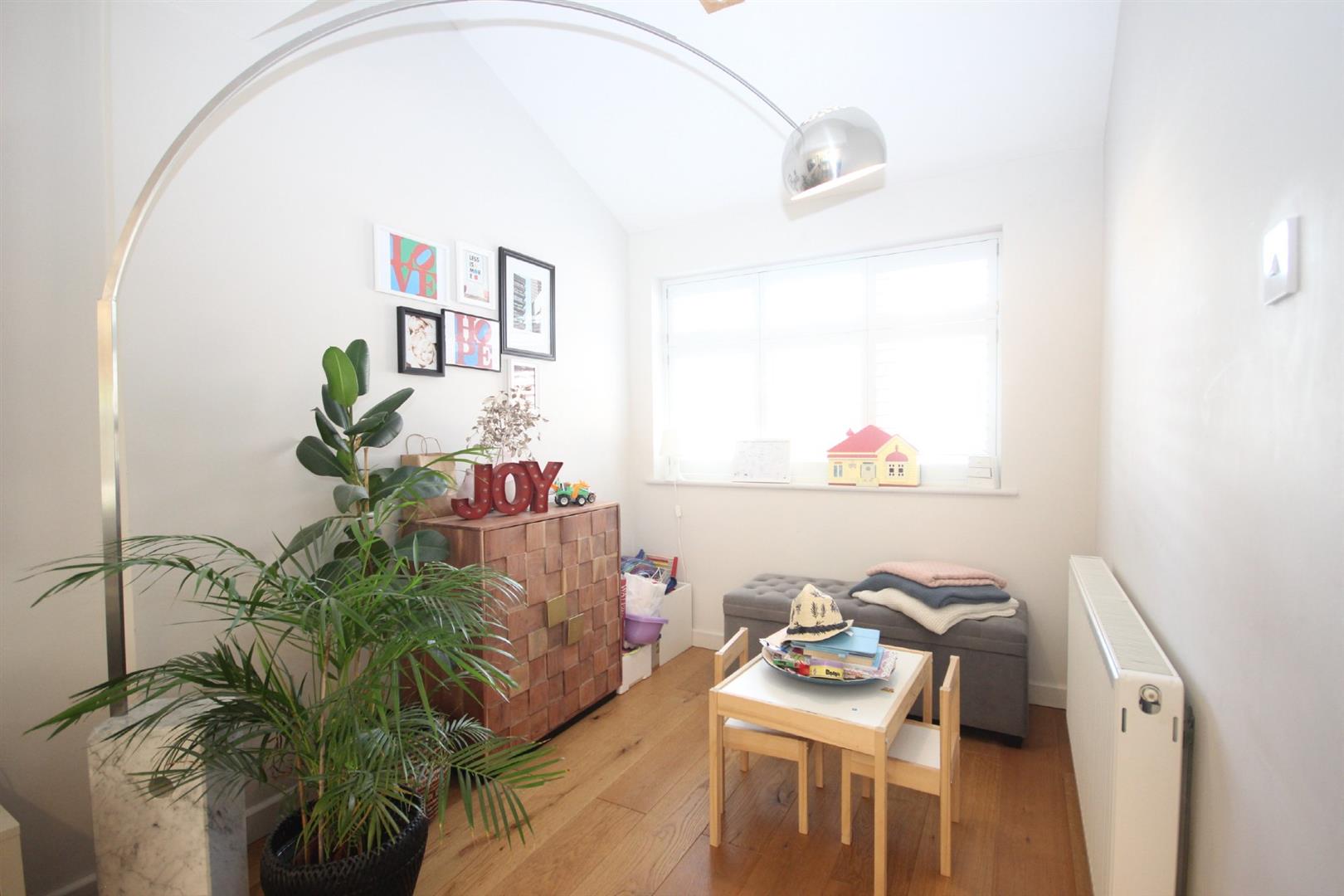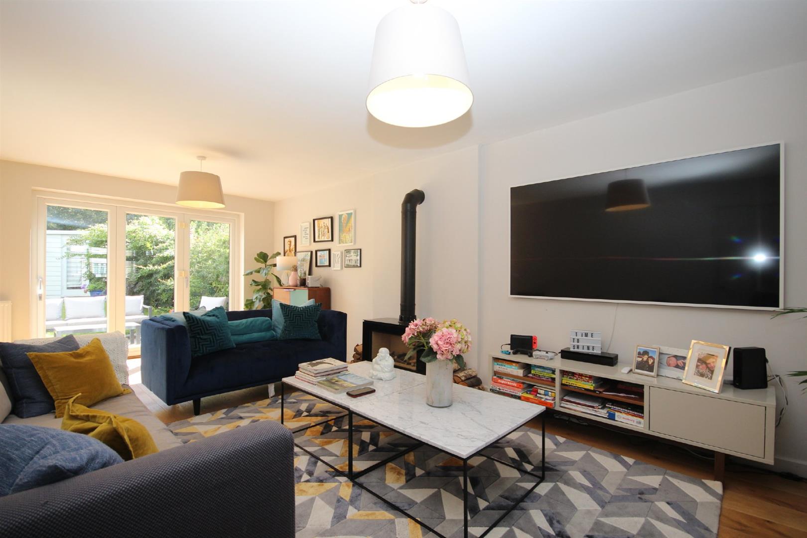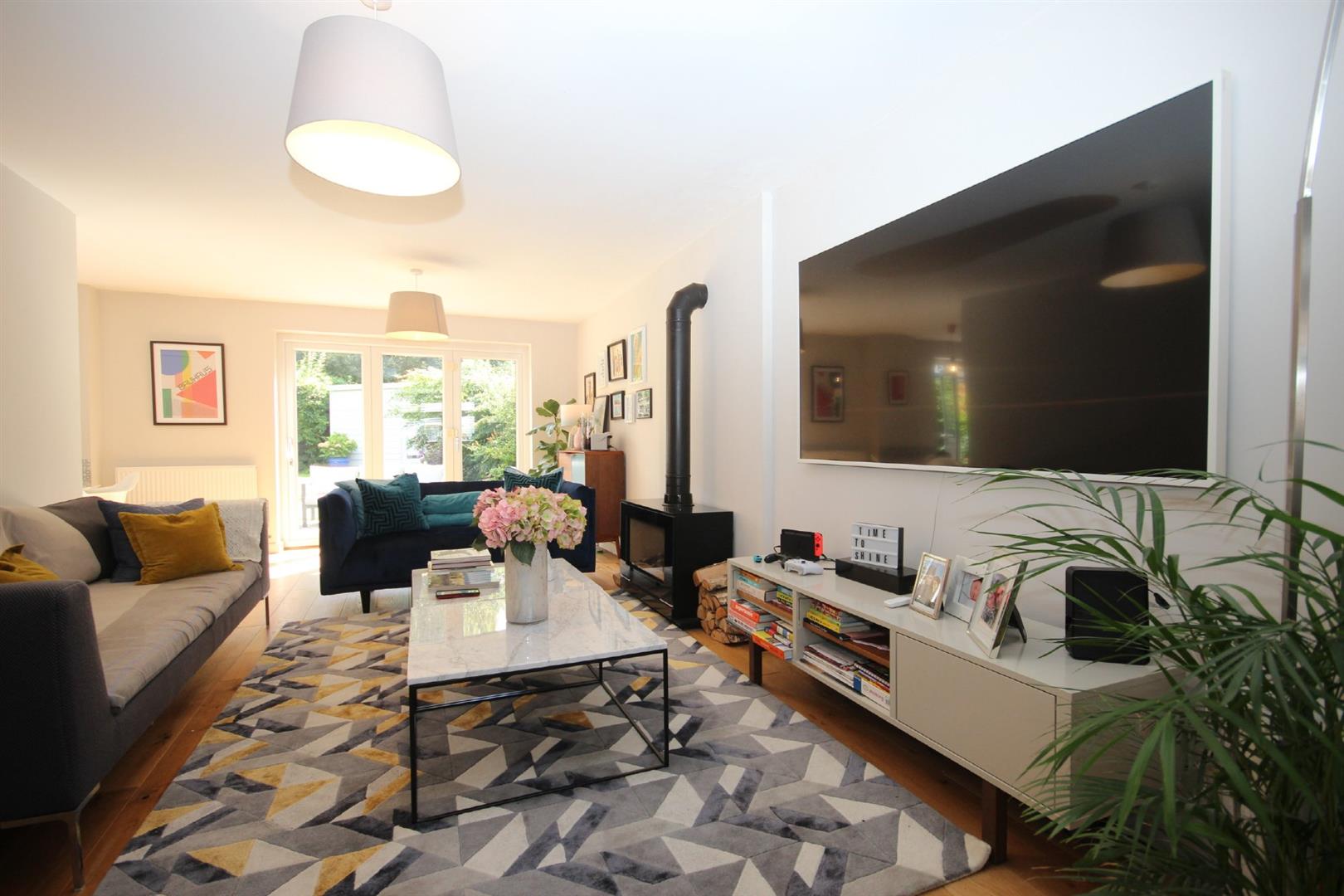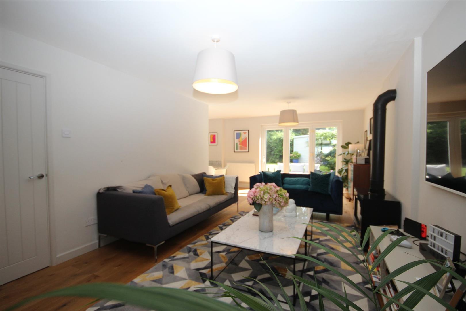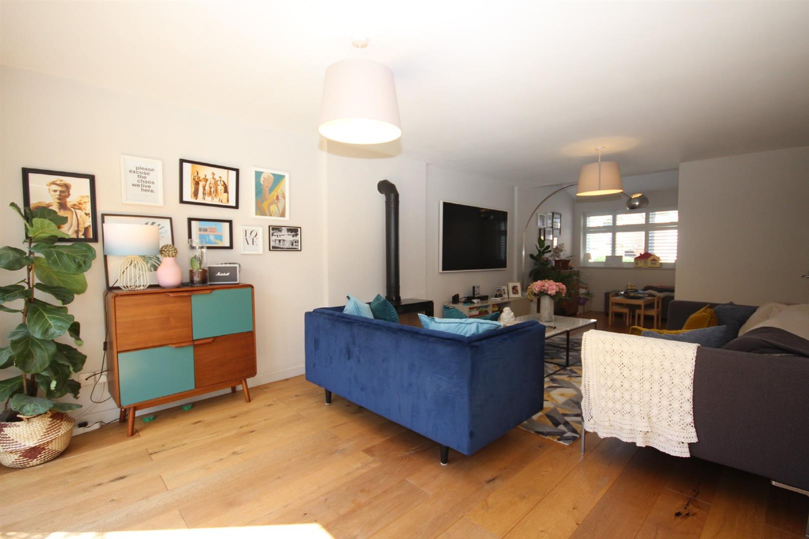 (Narrowing to 7.4') Feature wood burner, wood flooring, double glazed window to front with built in shutters, double glazed by-folding doors to rear.