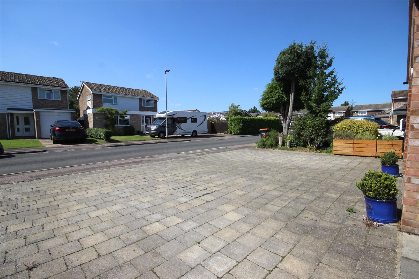 Paved driveway providing ample parking for several cars, gated side access to both sides, electric charging point, entrance porch with inset spot lighting.