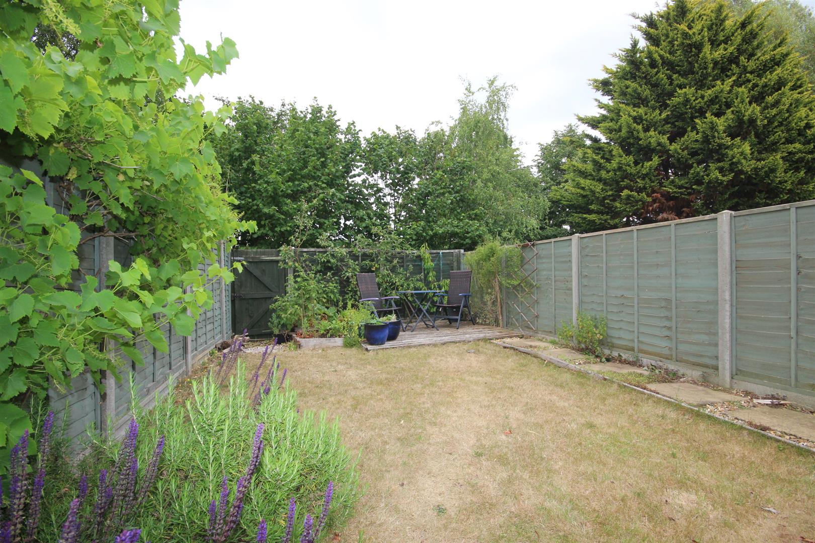 Laid to lawn, wood decking, flower and shrub borders, wood panel fence surround,