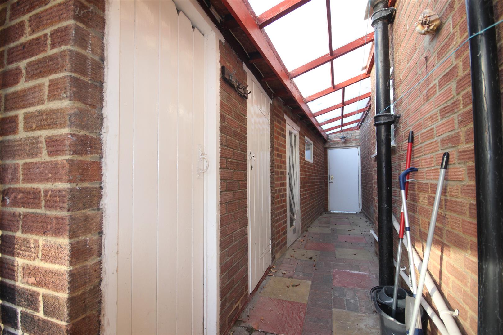 (Irregular shaped room)Electronic up and over style door with power and lighting, work shop area, door to rear, WC, utility room.