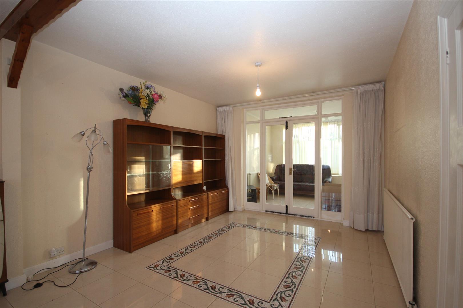 Double glazed bay window to front, tiled flooring, fireplace, double doors opening to family room.