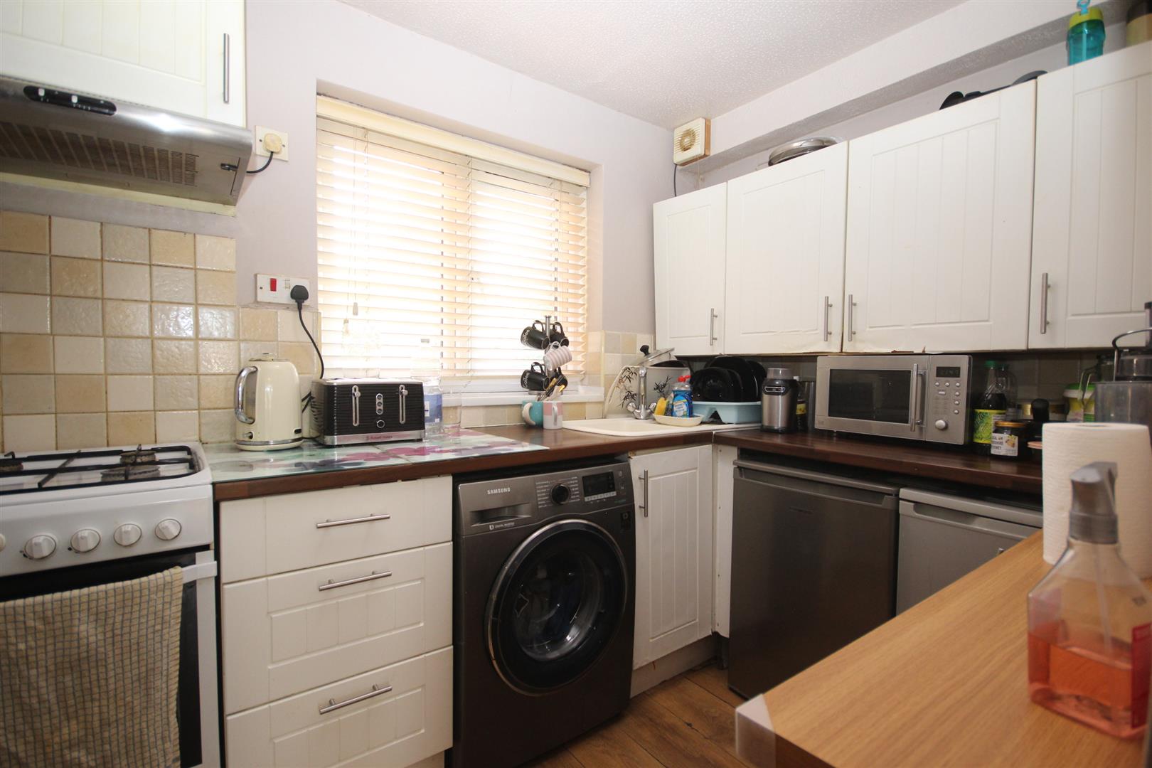 Fitted oven with extractor over, base and wall mounted units, plumbing for washing machine, double glazed window to rear.