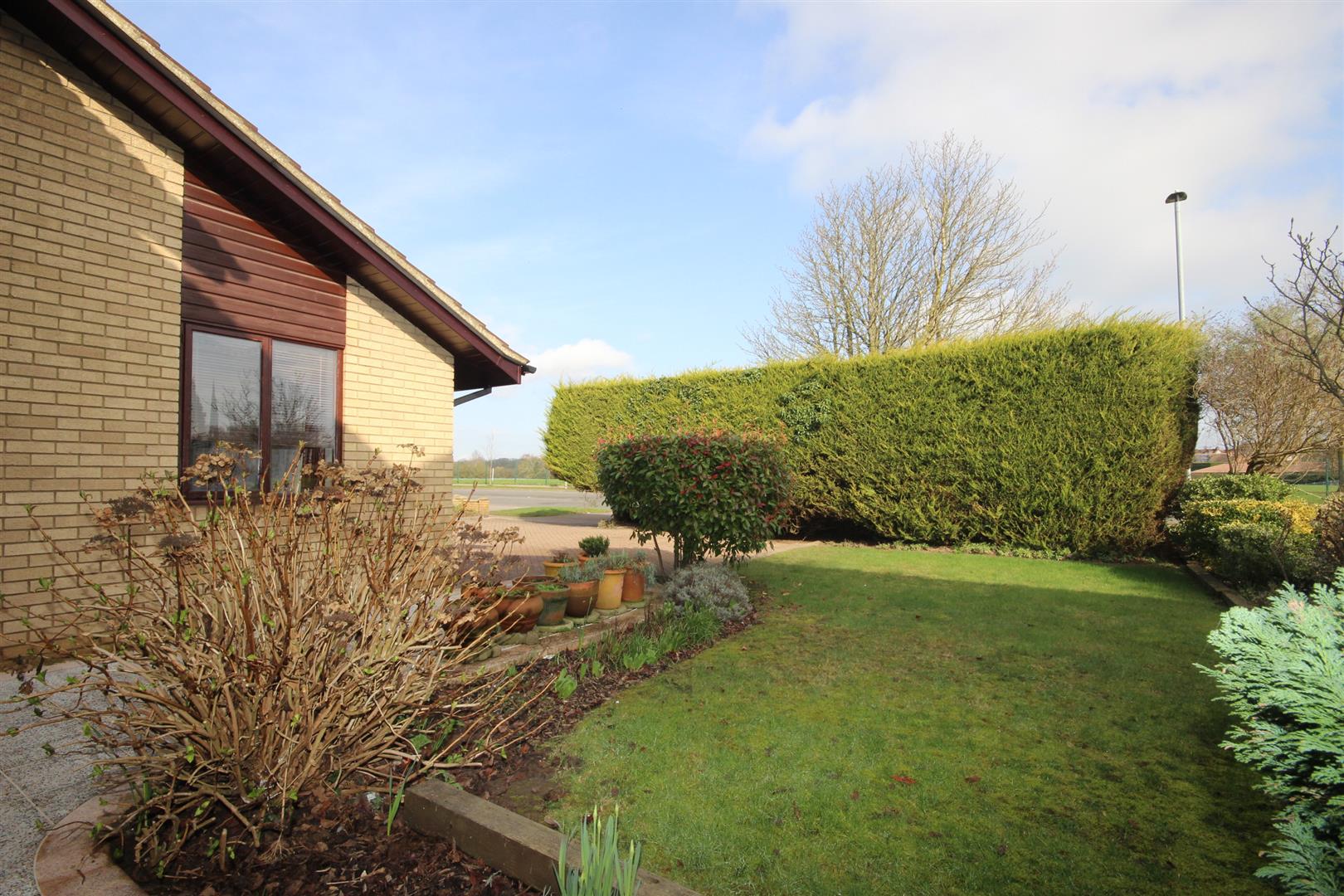Monobloc driveway providing ample parking for several vehicles, part laid to lawn mature hedge to front gated side access, flower and shrub borders.